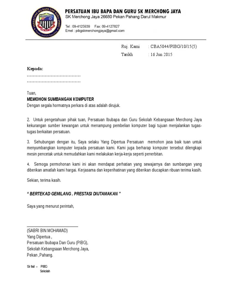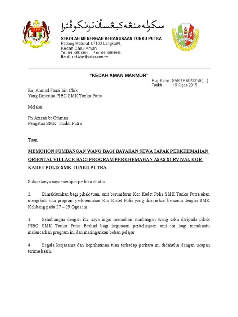 Penggunaan surat permohonan kerjasama ini tentu sudah bukan hal yang asing lagi untuk anda sekalian. Kertas kerja memohon peruntukan kewangan bagi pelaksanaan aktiviti akademik. Surat permohonan sumbangan dana untuk tunjangan hari rayacontoh format surat permohonan#suratpermohonanthr#permohonantunjanganhariraya#suratmintathr#. Surat memohon bantuan kewangan untuk membangunkan program via majlisulamarohingyamalaysia.blogspot.com. Surat ini juga sebagai tanda bahwa pemohon bantuan menghormati pemberi bantuan. Intinya saya ngeposting ini berawal dari tugas yang diberikan oleh organisasi saya supaya membuat sebuah surat permohonan. Surat permohonan sumbangan pokok bunga. Format yang digunakan adalah surat rasmi,perlunya ketelitian didalam susunan tata. Kumpulan contoh surat permohonan untuk kerjasama, rekomendasi, bantuan dana, permohonan maaf, beasiswa atau keperluan yang lain dengan penulisan yang baik dan benar. Contoh rancangan perniagaan via ayuutm2013.my surat sponsor via. Home » surat permohonan » 99 contoh surat edaran meminta sumbangan. Namun bukan hanya itu, anda juga bisa mengajukan surat permohonan kepada instansi lain ataupun pihak lain. Contoh surat permohonan untuk izin, kerjasama, barang contoh surat permohonan bantuan pengadaan ruang kelas baru.