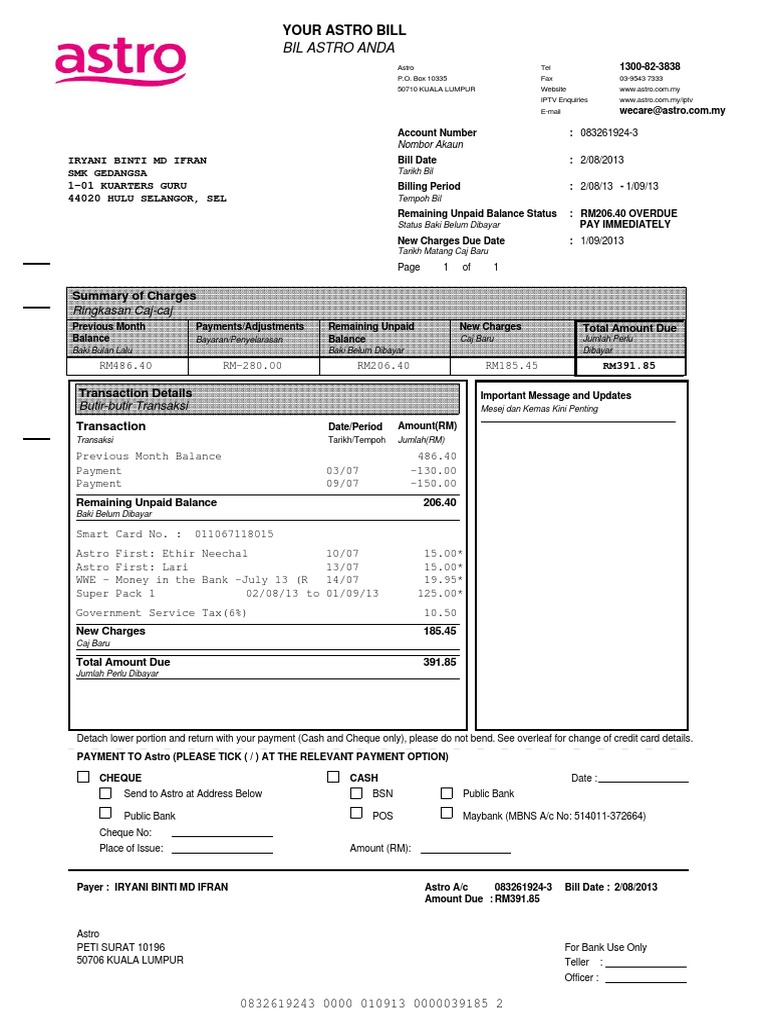Jika biskita ada memiliki kad kredit atau kad debit (easi cash) dari bank standard chartered, biskita boleh membuat pembayaran bil dst prima, elektrik, astro, bil telbru & bil this entry was posted in internet and tagged bayar bil online, bill payment, credit card, easi cash. • kemaskini segera ( untuk akaun yang telah dipotong akan disambung segera). Jadi, untuk bayar bil elektrik anda, pilih tenaga nasional berhad. Kalau korang ada account celcom. Astro #tutorial saya kongsikan cara bayar bil astro secara online mudah & pantas anda boleh bayar melalui: